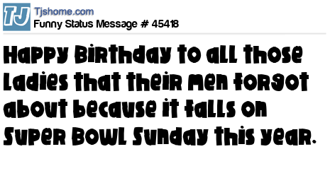 X says Happy Birthday to all those ladies that their men forgot about because it falls on Super Bowl Sunday this year.