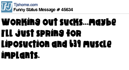 X is Working out sucks...maybe I'll just spring for liposuction and 639 muscle implants.