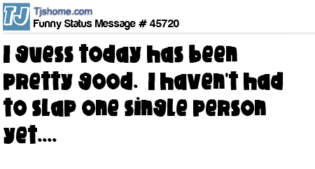 X says I guess today has been pretty good. I haven't had to slap one single person yet....