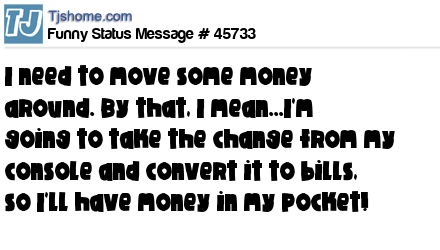 X says I need to move some money around. By that, I mean...I'm going to take the change from my console and convert it to bills, so I'll have money in my pocket!
