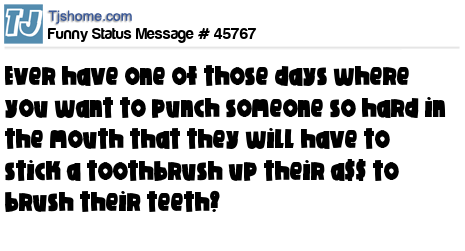 X is Ever have one of those days where you want to punch someone so hard in the mouth that they will have to stick a toothbrush up their a$$ to brush their teeth?