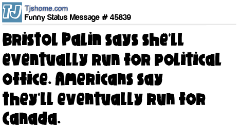 X Bristol Palin says she'll eventually run for political office. Americans say they'll eventually run for Canada.