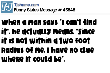 X is When a man says "I can't find it", he actually means, "Since it is not within a two foot radius of me, I have no clue where it could be".