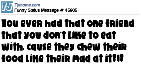 X you ever had that one friend that you don't like to eat with, cause they chew their food like their mad at it?!?