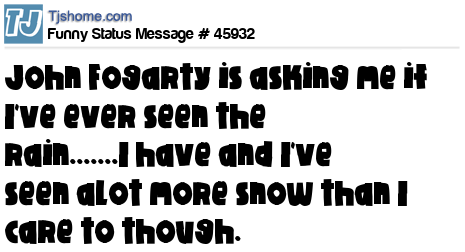 X John Fogarty is asking me if I've ever seen the rain.......I have and I've seen alot more snow than I care to though.
