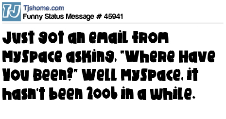 X Just got an email from MySpace asking, "Where Have You Been?" Well MySpace, it hasn't been 2006 in a while.
