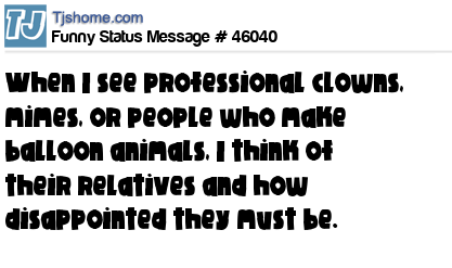X says When I see professional clowns, mimes, or people who make balloon animals, I think of their relatives and how disappointed they must be.