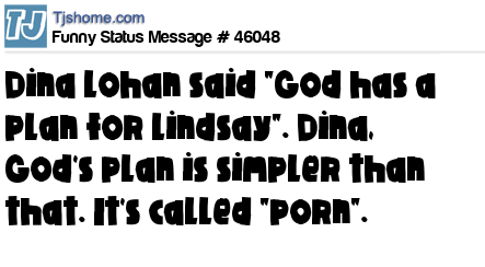 X says Dina Lohan said "God has a plan for Lindsay". Dina, God's plan is simpler than that. It's called "porn".