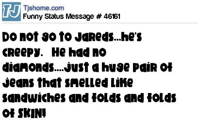 X do not go to Jareds...he's creepy. He had no diamonds....just a huge pair of jeans that smelled like sandwiches and folds and folds of SKIN!
