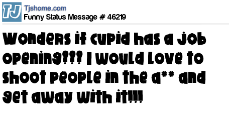 X is wonders if cupid has a job opening??? I would love to shoot people in the a** and get away with it!!!