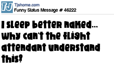 - # 199433 I sleep better naked, why can't the flight attendant understand this?