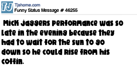 X is Mick jaggers performance was so late in the evening because they had to wait for the sun to go down so he could rise from his coffin.