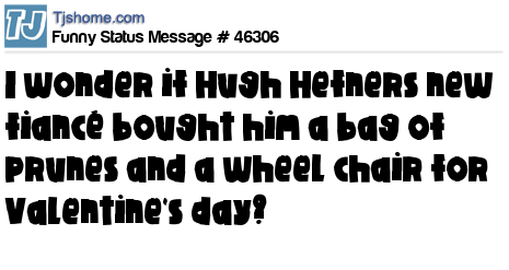 X is I wonder if Hugh Hefners new fiancé bought him a bag of prunes and a wheel chair for Valentine's day?