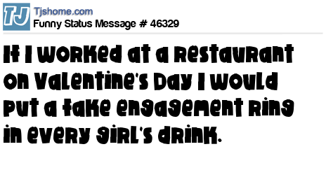 - # 88285 If I worked at a restaurent on Valentine's Day I would put a fake engagement ring in ever girl's drink !