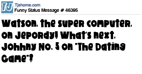 X is Watson, the super computer, on Jepordy! What's next, Johhny No. 5 on "The Dating Game"?