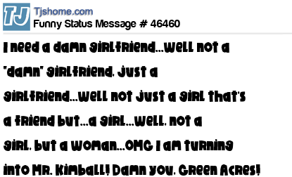 X I need a damn girlfriend...well not a "damn" girlfriend, just a girlfriend...well not just a girl that's a friend but...a girl...well, not a girl, but a woman...OMG I am turning into Mr. Kimball! Damn you, Green Acres!