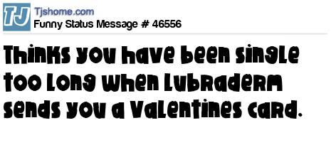 X is thinks you have been single too long when lubraderm sends you a Valentines card.