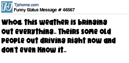 X Whoa, this weather is bringing out everything.. Theirs some old people out driving right now and don't even know it..