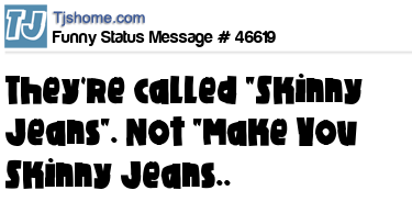 - # 151629 Ladies, they're called "Skinny Jeans." Not "Makes You Skinny Jeans."