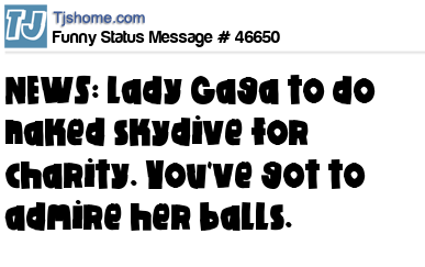 X NEWS: Lady Gaga to do naked skydive for charity. You've got to admire her balls.