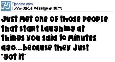X says Just met one of those people that start laughing at things you said 10 minutes ago....because they just "got it"