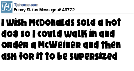 - # 107233 I am glad McDonalds doesn't sell hotdogs! I would hate to order a McWeiner!...And don't even get me started on Super Size!!!