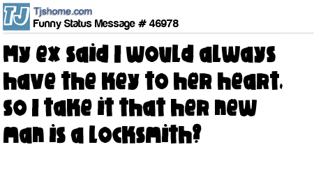 X says My ex said I would always have the key to her heart, so I take it that her new man is a locksmith?