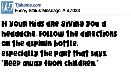 X says If your kids are giving you a headache, follow the directions on the aspirin bottle, especially the part that says, "keep away from children."