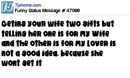 X Geting your wife two gifts but telling her one is for my Wife and the other is for my Lover is not a good idea. because she wont get it