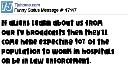 X If aliens learn about us from our TV broadcasts then they'll come here expecting 90% of the population to work in hospitals or be in law enforcement.