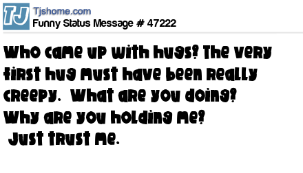 - # 128827 Who invented hugs? I mean..the first hug would have been soo awkward. its like"what are you doin, why are you holding me???" "shhh just trust me"