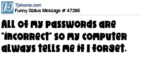 - # 53114 I just changed all my passwords to "incorrect", so my computer reminds me every time I forget...