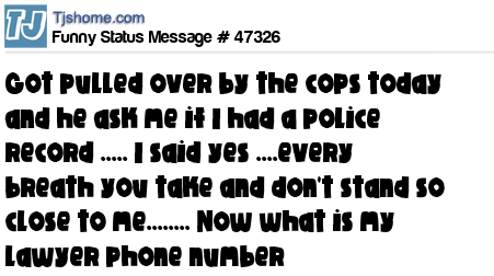 X Got pulled over by the cops today and he ask me if I had a police record ..... I said yes ....every breath you take and don't stand so close to me........ Now what is my lawyer phone number