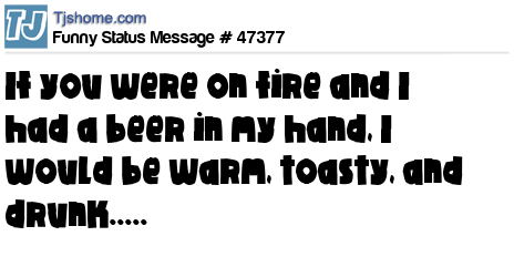 X If you were on fire and I had a beer in my hand, I would be warm, toasty, and drunk.....