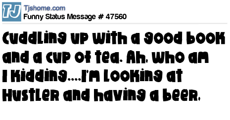 - # 70204 Cuddling up with a good book and a cup of tea. Ah, who the fock am I kidding....I'm watching ESPN and having a beer(s)