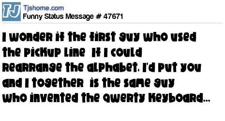 X says I wonder if the first guy who used the pickup line “If I could rearrange the alphabet, I'd put you and I together” is the same guy who invented the qwerty keyboard...