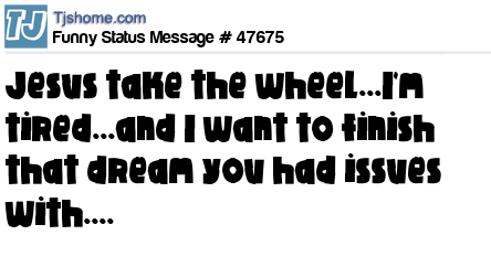 X Jesus take the wheel...I'm tired...and I want to finish that dream you had issues with....