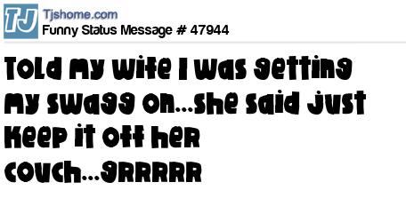X Told my wife I was getting my swagg on...she said just keep it off her couch...grrrrr