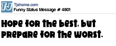 - # 68624 Expect nothing but plan for the worst, hope for the best and prepare to be surprised.