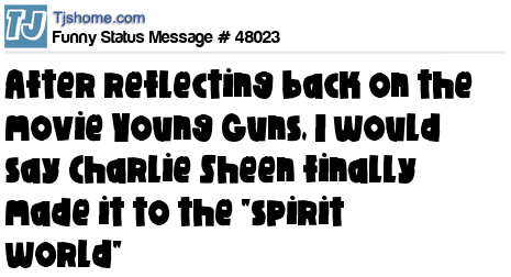 X After reflecting back on the movie Young Guns, I would say Charlie Sheen finally made it to the "spirit world"