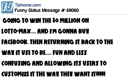 X is GOING TO WIN THE 50 MILLION ON LOTTO-MAX.... AND I'm GONNA BUY FACEBOOK. THEN RETURNING IT BACK TO THE WAY IT USE TO BE..... FUN AND LESS CONFUSING AND ALLOWING ITS USERS TO CUSTOMIZE IT THE WAY THEY WANT IT!!!!!