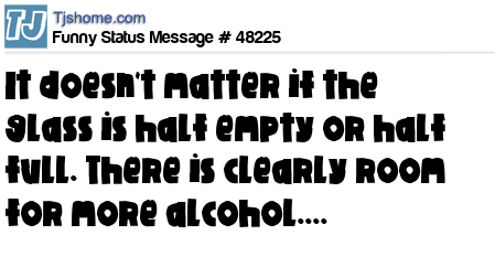 - # 34166 has just realized it doesnt matter if the glass is half empty or half full...either way it just means there is still room for more vodka!
