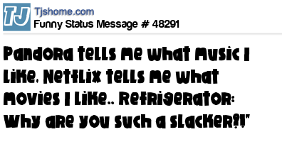 X is Pandora tells me what music I like, Netflix tells me what movies I like.. Refrigerator: Why are you such a slacker?!"