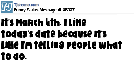 - # 48326 March 4th. I like tomorrows date because it's like i'm telling people what to do.