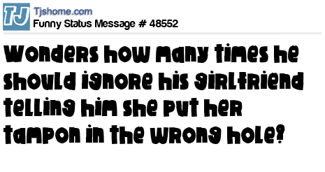 X wonders how many times he should ignore his girlfriend telling him she put her tampon in the wrong hole?