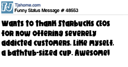 X wants to thank Starbucks CEOs for now offering severely addicted customers, like myself, a bathtub-sized cup. Awesome!