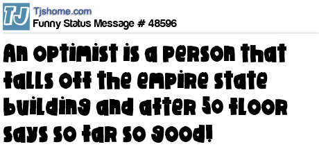 - # 9416 An optimist is someone who falls off the Empire State Building, and after 50 floors says, 'So far so good!'