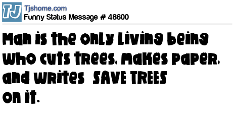 - # 117087 Humans are the only creatures on earth that will cut down trees, make paper, then write "Save Trees" on them...