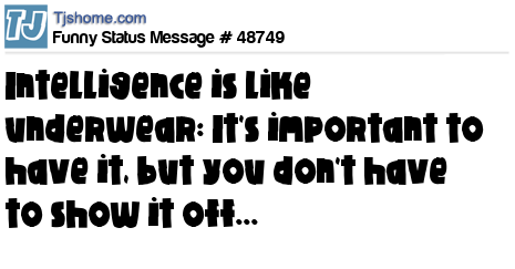 - # 114830 Intelligence is like underwear. It's important that you have it but there's no need to show it off.