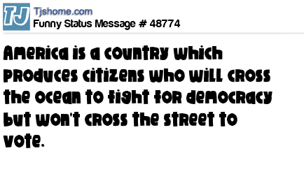X is America is a country which produces citizens who will cross the ocean to fight for democracy but won't cross the street to vote.
